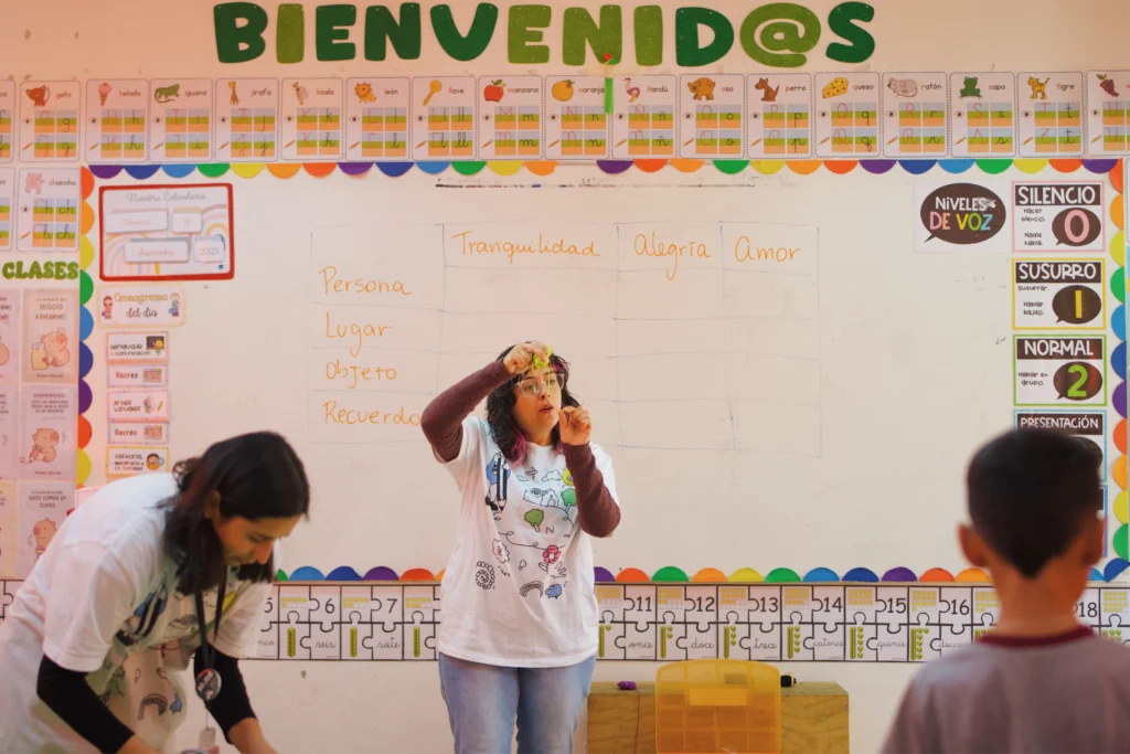 A partir de estas ideas iniciales, los docentes comenzaron a diseñar actividades propias, siempre acompañados por el equipo de Nube Lab, que aportó referencias, ejemplos y herramientas metodológicas para enriquecer las propuestas. “Hablamos de acompañamiento pedagógico más que de capacitación, porque no se trató de entregar contenidos para replicar, sino de acompañar a los docentes en su desarrollo profesional, partiendo de la base de que ellos ya saben mucho”, comenta Catalina Pavez, líder de formación y contenidos de Nube Lab y coordinadora del proyecto. Durante todo el proceso se incorporaron contenidos del Método Nube de forma aplicada, como el uso del contexto como recurso pedagógico y las distintas dimensiones del método, centrales en el diseño de las actividades.