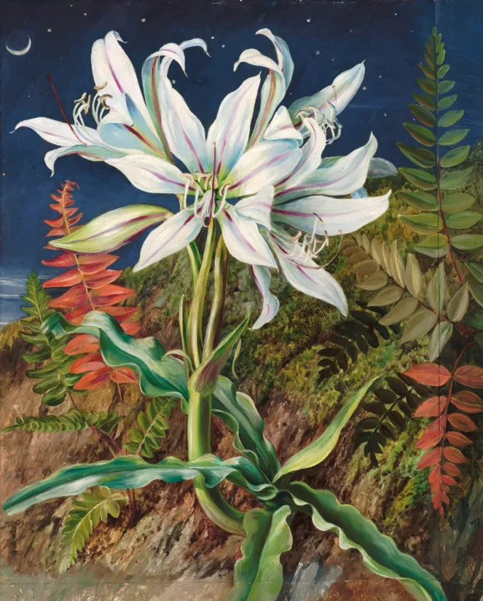 Algunas ajustaron sus colores a la forma de ver de sus visitantes. Muchas flores azules, por ejemplo, resultan especialmente vistosas para las abejas, cuya percepción del color se extiende del ultravioleta al verde y es insensible al rojo. Muchas de estas flores presentan patrones ultravioleta —invisibles al ojo humano— que funcionan como guías hacia el néctar y el polen. Otras plantas adaptaron su ritmo al tiempo de sus polinizadores. Antes de la aparición de las abejas, algunos de los primeros polinizadores fueron escarabajos y polillas. Para encontrarlos, ciertas flores comenzaron a abrirse de noche: grandes y blancas para reflejar la poca luz disponible, y cargadas de fragancias intensas que orientan a quienes se mueven en la oscuridad. En otros casos, la forma fue clave. Las flores tubulares y colgantes, de colores rojos o anaranjados, se ajustaron al cuerpo y al vuelo de los picaflores. Su longitud y profundidad dialogan con picos largos y lenguas ágiles, permitiéndoles recolectar néctar mientras permanecen suspendidos en el aire.