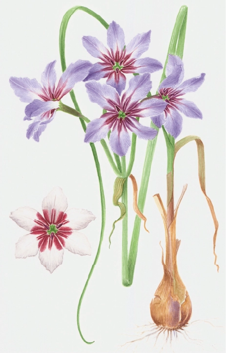 El huilli (Leucocoryne ixioides) es otro caso de planta geófita endémica de la zona central de Chile. Al igual que la amancay, resguarda su energía bajo tierra: almacena agua y nutrientes en un órgano subterráneo llamado cormo, desde donde permanece en pausa durante los períodos adversos y rebrota cuando las condiciones vuelven a ser favorables. Crece en lugares abiertos y soleados, sobre suelos arenosos, y se distribuye desde la región de Atacama hasta el río Biobío, siendo especialmente abundante entre los ríos Elqui y Maipo. Es una de las especies que emerge con fuerza durante el fenómeno del Desierto Florido.