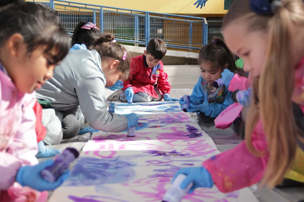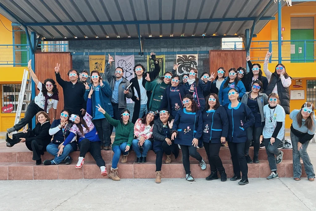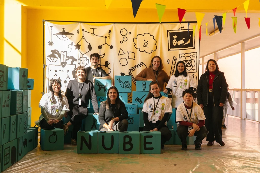 La primera de ellas fue realizar experiencias artístico-educativas para todos los niveles, desde prekínder hasta 8.º básico. Las actividades —adaptables y de materiales simples, como fósiles de yeso o herramientas gráficas hechas con tubos de confort— se convirtieron en momentos muy esperados por estudiantes y docentes. “Durante el recreo nos saludan al instante, nos reconocen y comentan ‘llegó la Nube’”, recuerda Miguel Maira, coordinador de taller y recursos. “Quieren saber cuándo les toca con nosotros; hay mucha expectativa”. Los profesores, a su vez, comenzaron a ver vínculos con sus propias asignaturas: “Los fósiles se pueden abordar desde ciencias naturales, los usleros sirven para hacer estampados diaguitas…”, cuenta Catalina Pavez, líder de formación y contenidos y coordinadora del proyecto.
