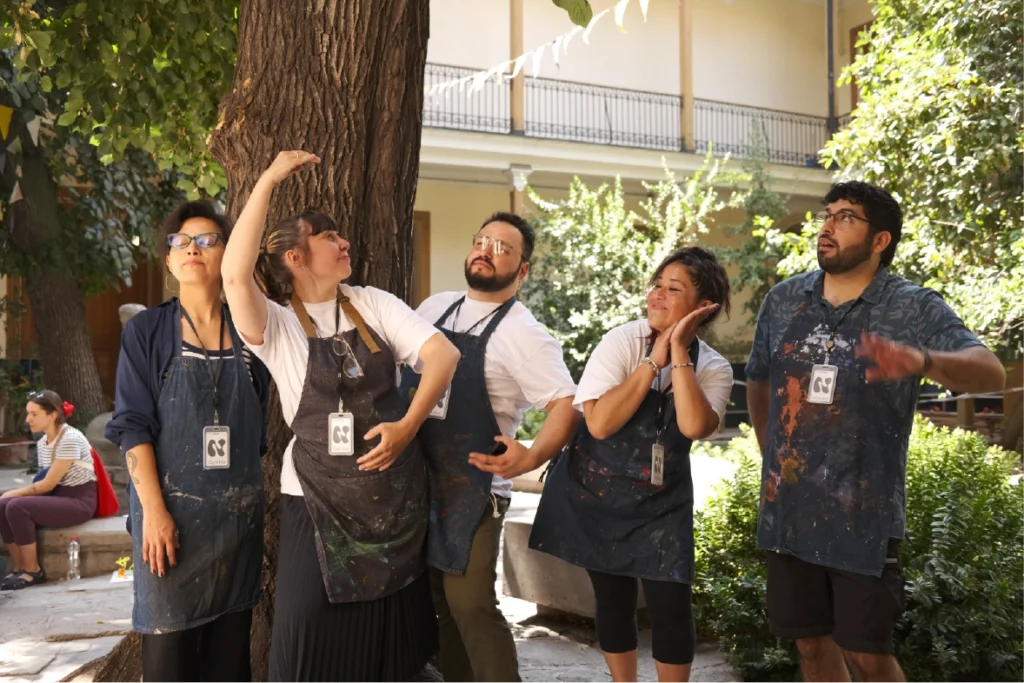 Hacia el cierre de la semana, las y los residentes pusieron el cuerpo en acción al mediar una experiencia artística en la V Escuela de Verano para Profesoras y Profesores, realizada en el Museo de la Educación Gabriela Mistral. Asumir el rol de mediadores culturales en un contexto real fue un momento clave para ganar confianza, observarse en acción y experimentar qué significa sostener una experiencia artística con otros. Según relata Antonia Canales, coordinadora del proyecto, se sintieron cómodos en ese rol, pero, sobre todo, valoraron ver al equipo Nube: no solo mediando, sino también adaptándose a los distintos escenarios con flexibilidad y atención a lo que iba ocurriendo.