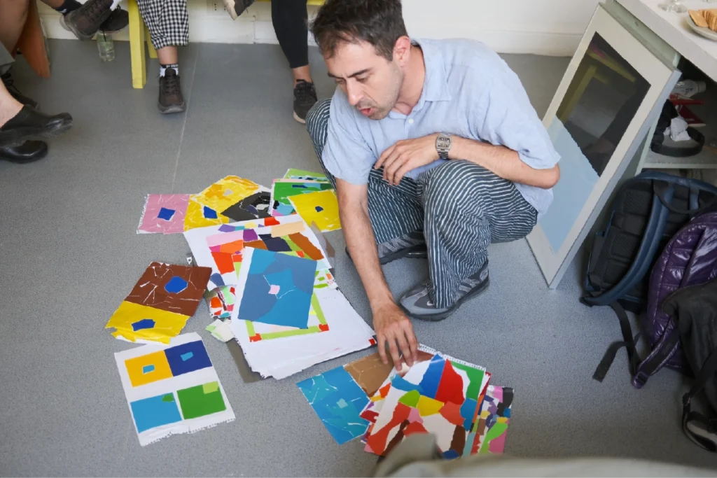 Otro momento clave de la residencia fue la visita al taller del artista Pablo Rodríguez. Allí, las y los residentes se detuvieron a observar su proceso creativo y como el juego, las infancias y la educación atraviesan su práctica. Uno de los comentarios que más se repitió fue el valor de ver el proceso de un artista en acción y comprender que el rol artístico no está separado de las personas ni del acto de mediar, hacer talleres o transferir saberes. La creación y la educación aparecieron como procesos que se nutren mutuamente: el trabajo con otros alimenta la obra, y la obra, a su vez, abre nuevas formas de encuentro.